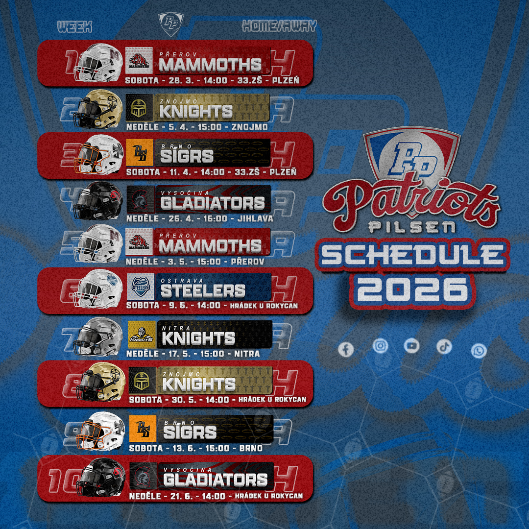 Naše vlajková loď, seniorský tým, má před sebou v pořadí druhou sezonu v nejvyšší české soutěži. Po loňském posledním místě s jednou výhrou čekáme lepší sezonu. A to třeba i díky rozšíření týmu o kluky z Příbram Bobcats, jejichž seniorský tým nebude v letošní sezoně hrát žádnou soutěž. Tito kluci přinesli do týmu krom svých nesporných herních dovedností i další rozměr. Byl bych rád, aby se z jejich přístupu „naši“ kluci vzali v mnoha směrech příklad. V současné chvíli to vypadá, že nám v sezoně pomůžou hned tři borci původem z USA. I od nich si hodně slibujem. V neposlední řadě jsme nadšeni z vysokého počtu borců z našeho juniorského programu na soupisce seniorského týmu. Jsem tedy přesvědčen, že letos můžeme ve společnosti Přerova Mammoths, Brna Sígrs, Nitry Knights, Znojma Knights, ISSM Ostravy Steelers a Vysočiny Gladiators být štikou ligy. Také letos odehrajeme první dva domácí zápasy v Plzni na ZŠ Terezie Brzkové, zbylé v Hrádku u Rokycan.