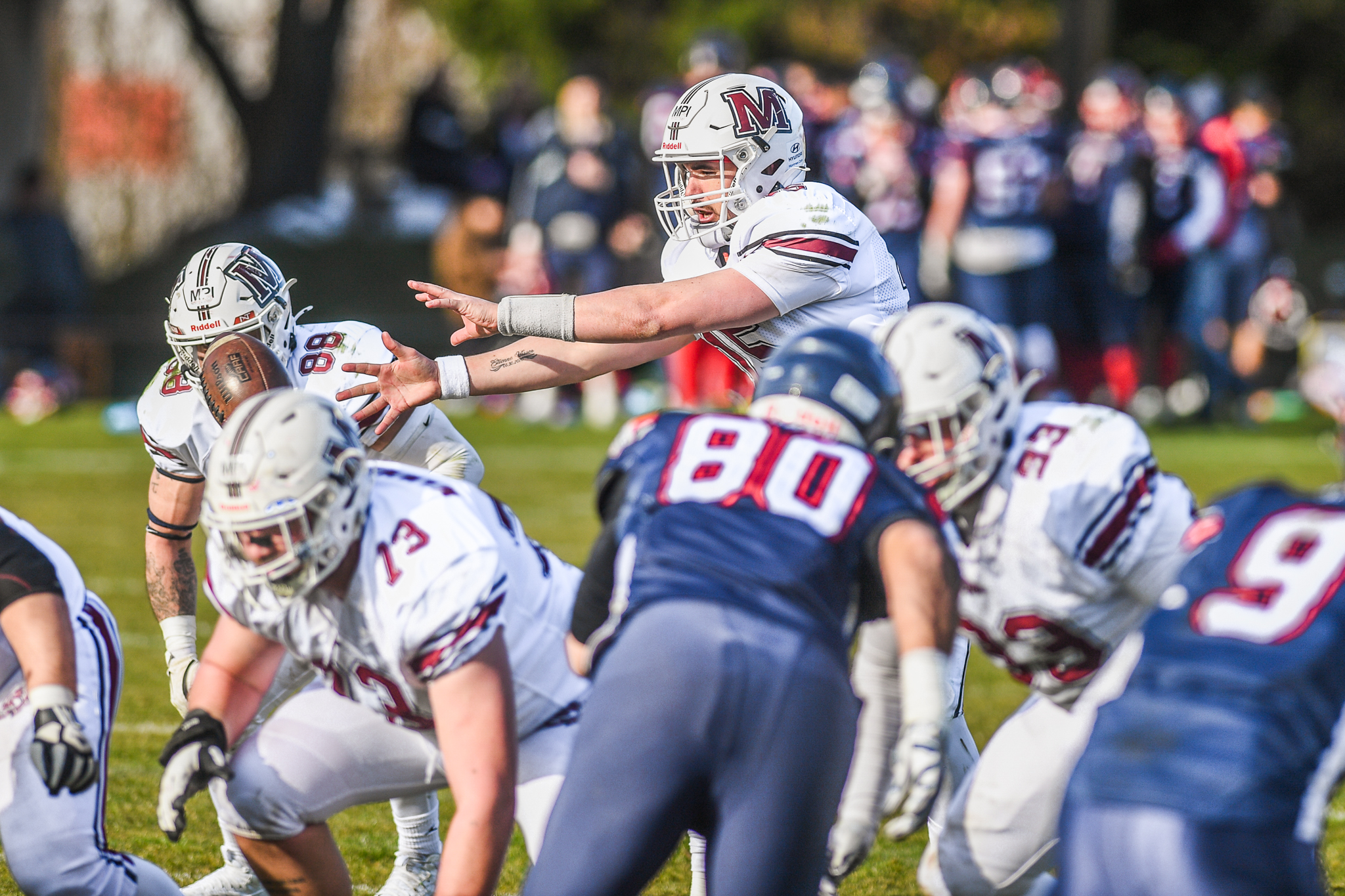 Na řadu tak přišla opět domácí obrana, během proběhlého drivu pěkně namotivovaná domácím defenzivním koordinátorem Danem Kokoškou, jehož proslov musel probudit i lidi v Rokycanech. A jeho řeč viditelně zabrala, Visser totiž poprvé ochutnal 3 a ven. A protože během puntu přešla unnecessary rouhgness Petra Krobota, dostal útok Patriots míč na 33y Mammoths. A trestal. Pas na Drmlu znamenal 22y zisk, zbylých 10 připsal David Hlaváček. Pokus o dvoubodovou konverzi nevyšel. 21:12. Do konce poločasu chyběla necelá půlminuta a když Smolíkův běhový pokus skončil na Jirkovi Urbanovi s Danem Vokurkou, bylo jasné, že se do poločasu již nic nestane.