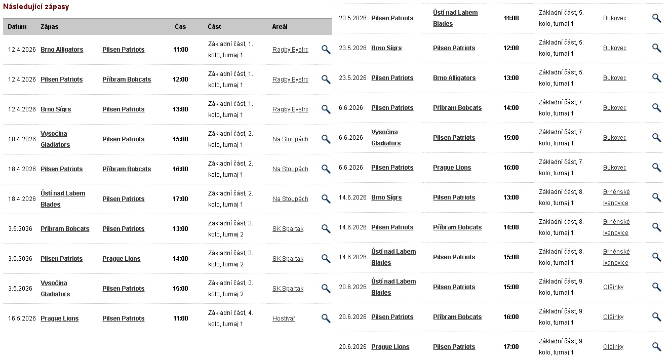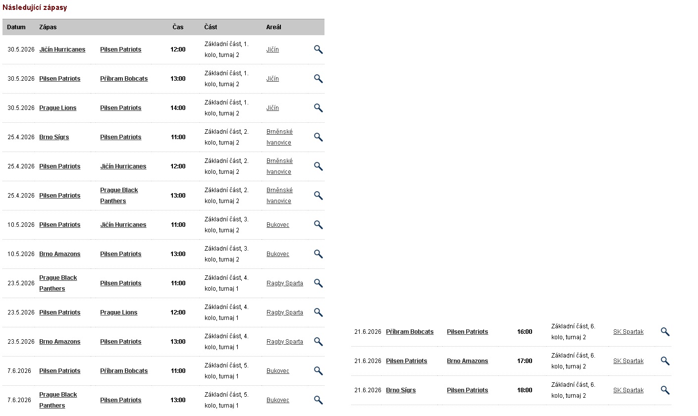 Všechny týmy mají pravidelné tréninky na našem hřišti v Plzni-Bukovci každé úterý a čtvrtek od 17:00. Do každého týmu neustále nabíráme nové hráče. Není tedy nic jednoduššího, než si vzít kopačky a přijít si tento sport vyzkoušet na jakýkoliv trénink. S případnýmy dotazy nás můžete kontaktovat na emailu postmaster@pilsenpatriots.cz, případně si promluvit se samotnými trenéry.