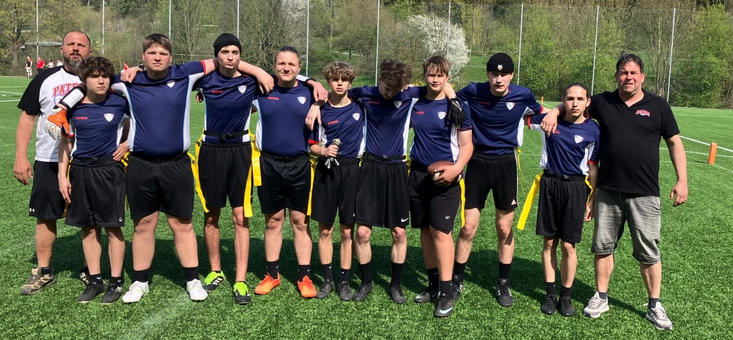 Historickou soutěžní premiéru má za sebou náš nejmladší tým do 12 let. A byla velmi úspěšná. Na turnaji ve Valdicích si Patriots nejprve po touchdownech Filipa Součka, Jáchyma Řeháka (2x), Soni Havrilové a Ondřeje Krbečka poradili s domácím výběrem Jičín Hurricanes 34:6. V následujícím zápase dokázal ještě větší porážku uštědřit Prague Black Panthers!!! Na výhře 44:6 se tentokrát podíleli touchdowny Jáchym Řehák, Soňa Havrilová, Adéla Součková, Ondřej Krbeček (2x) a Markéta Čapková (2x). Není tak divu, že trenér Tomáš Linka byl po turnaji velmi spokojený: "Jsem opravdu nadšený. Celý tým byl řádně připraven a v turnaji plnil vše do puntíku. I za vyššího vedení děti udržely absolutní koncentraci a s pokorou pokračovaly v zodpovědném plnění svých úkolů. Ukázalo se, že poctivá příprava vede k zaslouženým výsledkům. Speciálně bych rád vyzdvihl nováčky v týmu. Kromě toho, že každý z nich skoroval v turnaji touchdown ukázaly své předpoklady k americkému fotbalu. Jáchym Řehák byl na runningbacku naprosto nezastavitelný, Ondra Krbeček v obraně spolehlivě zastavil vše co se kolem něj mihlo a pro Markétu Čapkovou nebyl na pozici receivera žádný míč nedosažitelný. Ale pochválit chci kompletní tým. Bylo vidět, že zkušenosti z loňské sezony jsou neocenitelné. Přeci jen v kategorii U15 je vše o level rychlejší a tady se ukázalo, že děti už jsou zvyklé pracovat ve vyšších obrátkách než bylo na turnaji vidět. Což bylo patrné zejména na pozici quarterbecka, kde se během turnaje prostřídaly Julie Brožová a Soňa Havrilová. Tajně jsme ve dvě výhry věřili, ale o takovém průběhu jsme se neodvážili ani snít. Určitě však nebudeme spát na vavřínech. Byl to pouze první turnaj a my z něj máme velkou radost. Chceme takových turnajů prožít více a proto se vracíme do poctivé práce na trénincích."
